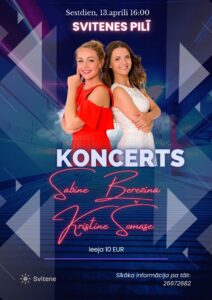 Svitenes pilī 13. aprīlī plkst. 16 Sabīnes Berezinas un Kristīnes Šomases koncerts.