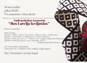 Vecumnieku vidusskolā 14. novembrī plkst. 18 sadraudzības koncerts «Mēs Latvijā ievijušies».