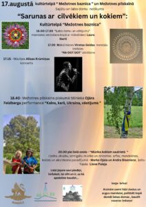 Mežotnes pilskalna plakumā plkst. 18.40 tēlnieka Ojāra Feldberga performance «Kalns, karš, Ukraina, vēstījums»; plkst. 20 pie lielā ozola «Mūzika kokiem saulrietā» (ķeltu, druīdu, semigallu mūzika un dziesmas).