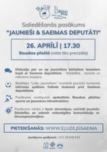 Bauskā 26. aprīlī no plkst. 17.30 saliedēšanās pasākums «Jaunieši & Saeimas deputāti».