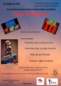 Rundāles multifunkcionālā centra brīvdabas amfiteātrī 5. jūlijā plkst. 21 saulrieta koncerts dienvidnieciskās kaislībās «Reiz Andalūzijā» – mūzika, deja, flamenko.