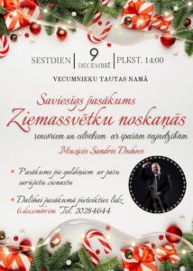 Vecumnieku tautas namā 9. decembrī plkst. 14 saviesīgs pasākums Ziemassvētku noskaņās senioriem un cilvēkiem ar īpašām vajadzībām.