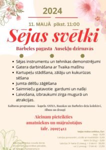 Bārbeles pagasta Ausekļu dzirnavās 11. maijā plkst. 11 Sējas svētki.