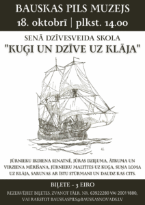 Bauskas pils muzejā 18. oktobrī plkst. 14 senās dzīvesveida skolas nodarbība «Kuģi un dzīve uz klāja», kurā varēs uzzināt, cik senatnē viegli vai grūti bija kuģot.