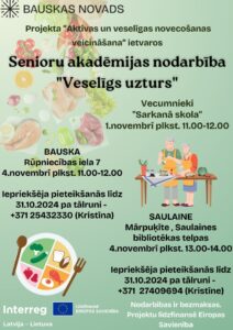 Bauskā, Rūpniecības ielā 7, 4. novembrī plkst. 11 – 12 Senioru akadēmijas nodarbība «Veselīgs uzturs».