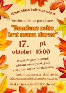 Grenctāles kultūras namā 17. oktobrī plkst. 16 senioru dienas pasākums «Rudens zelts krīt manā dārzā».