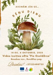 Rundāles pagasta vides izziņas sētā «Pie ozoldārza» 4. oktobrī plkst. 14 sēņu diena.