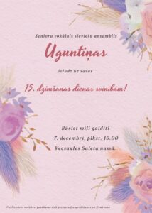 Vecsaules saieta namā 7. decembrī plkst. 19 senioru vokālā sieviešu ansambļa «Uguntiņas» 15. dzimšanas dienas koncerts.