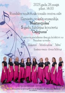 Rundāles multifunkcionālā centra zālē 28. maijā plkst. 14 sieviešu vokālā ansambļa «Naktsvijoles» 5 gadu jubilejas koncerts «Ceļojums».