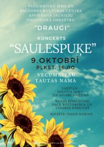 Vecumnieku tautas namā 9. oktobrī plkst. 16 Vecumnieku mūzikas un mākslas skolas un Baldones kultūras centra apvienotā jauniešu simfoniskā orķestra «Draugi» koncerts «Saulespuķe».