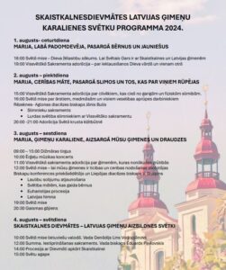 SKAISTKALNES DIEVMĀTES LATVIJAS ĢIMEŅU KARALIENES SVĒTKU PROGRAMMA 2024.