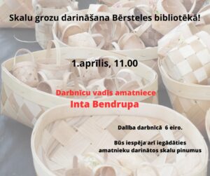 Bērsteles bibliotēkā 1. aprīlī plkst. 11 skalu grozu darināšana.