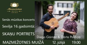 Mazmežotnes muižā 12. jūlijā plkst. 19 spāņu renesanses mūzikas mīlestības dziesmu programma «Sevilja 16. gadsimtā: skaņu portrets» divu mūziķu – dziedātājas Dārtas Paldiņas un spāņu lautista Diego Gámez (Šveice) izpildījumā.