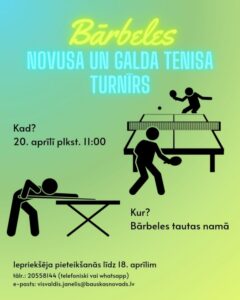 Bārbeles tautas namā 20. aprīlī plkst. 11 spēļu diena Bārbelē (galda teniss, novuss).