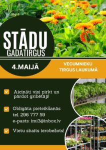 Vecumnieku tirgus laukumā 4. maijā plkst. 8 stādu gadatirgus.