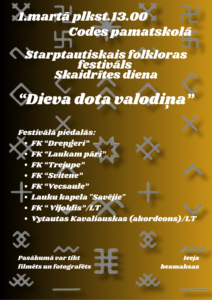 Codes pamatskolā 1. martā plkst. 13 starptautiskais folkloras festivāls, Skaidrītes diena «Dieva dota valodiņa».