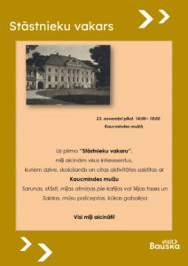 Kaucmindes muižā 23. novembrī no plkst. 14 līdz 18 stāstnieku vakars.