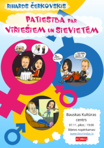 Bauskas Kultūras centrā 7. novembrī plkst. 19 stāvizrāde «Patiesība par vīriešiem un sievietēm».