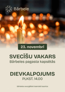 23. novembrī plkst. 14 svecīšu vakara dievkalpojums Bārbeles evaņģēliski luteriskajā baznīcā.