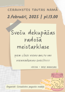 Ceraukstes tautas namā 2. februārī plkst. 13 sveču dekupāžas radošā meistarklase.