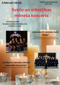 Rundāles multifunkcionālajā centrā 3. februārī plkst. 19 sveču un mīlestības mēneša koncerts kopā ar MFC kolektīviem un viesiem.