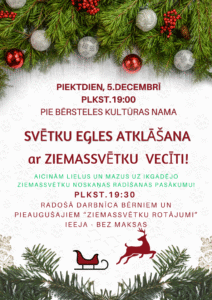 Bērsteles kultūras namā 5. decembrī plkst. 19 svētku egles atklāšana ar Ziemassvētku vecīti.