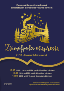 Bauskas Kultūras centrā21. decembrī plkst. 10 svētku pasākums Bauskā deklarētajiem pirmsskolas vecuma bērniem «Ziemeļpola ekspresis».