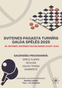 Svitenes tautas namā 25. oktobrī plkst. 10 Svitenes pagasta turnīrs galda spēlēs 2025.