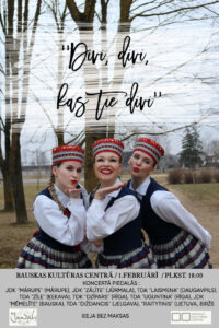 Bauskas Kultūras centrā 1. februārī plkst. 18.00 tautas deju ansamblis «Jandāls» un kolektīva draugi aicina uz tautas deju ansambļu un jauniešu tautas deju kolektīvu koncertu «Divi, divi, kas tie divi».