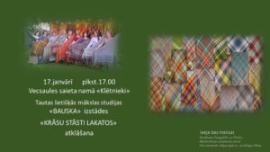 Vecsaules saieta namā «Klētnieki» 17. janvārī plkst. 17 tautas lietišķās mākslas studijas «Bauska» izstādes «Krāsu stāsti lakatos» atklāšana.