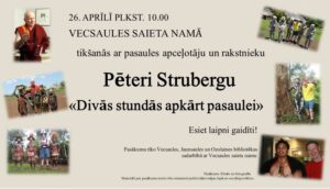Vecsaules saieta namā «Klētnieki» 26. aprīlī plkst. 10 tematisks pasākums «Divās stundās apkārt pasaulei» – tikšanās ar pasaules apceļotāju un rakstnieku Pēteri Strubergu.