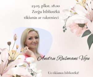Zorģu bibliotēkā 23. maijā plkst. 18 tikšanās ar rakstnieci Andru Rušmani-Vēju.