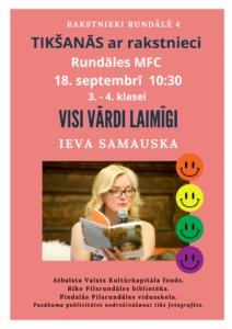 Rundāles multifunkcionālā centra zālē18. septembrī plkst. 10.30 tikšanās ar rakstnieci Ievu Samausku.