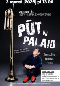 Grenctāles kultūras namā 2. martā plkst. 13 Vaira Nartiša instrumentāla stand-up izrāde «Pūt un palaid».
