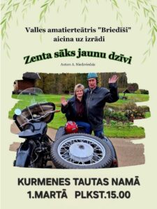 Kurmenes tautas namā 1. martā plkst. 15 Valles amatierteātra «Briedīši» izrāde «Zenta sāks jaunu dzīvi».