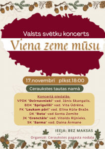 Ceraukstes tautas namā valsts svētku koncerts «Viena zeme mūsu» 17. novembrī plkst. 18.