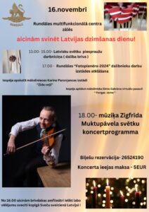 Rundāles multifunkcionālajā centrā 16. novembrī plkst. 13 – 15 latvisku svētku piespraužu darbnīciņa, plkst. 17 Rundāles fotoplenēra 2024» dalībnieku izstādes atklāšana, plkst. 18 mūziķa Zigfrīda Muktupāvela svētku koncertprogramma (ieeja 5 EUR).