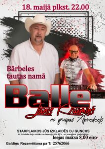 Bārbeles tautas namā 18. maijā plkst. 22 vasaras ieskaņas balle kopā ar J. Krūmiņu no grupas «Apvedceļš» un DJ Gunchu.
