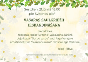 Pie Svitenes pils, sliktos laika apstākļos tautas namā, 21. jūnijā plkst. 18 vasaras saulgriežu ieskandināšana.