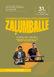 Iecavas parka estrādē 31. maijā no plkst. 22 ikgadējā vasaras sezonas atklāšanas zaļumballei kopā ar grupu «Brīvdiena».