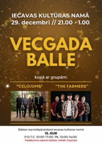 Iecavas kultūras namā 29. decembrī plkst. 21 Vecgada balle kopā ar grupām «The Farmers» un «Ceļojums».