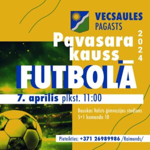 Bauskas valsts Gimnāzijas stadionā 7. aprīlī plkst. 11 Vecsaules pagasta pavasara kauss futbolā.