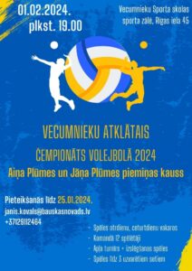 Vecumnieku sporta skolas sporta zālē 1. februārī plkst. 19 Vecumnieku atklātais čempionāts un Aiņa Plūmes un Jāņa Plūmes piemiņas kauss volejbolā vīriešiem 2024.