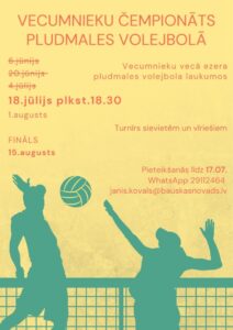 Vecumnieku vecā ezera pludmalē 18. jūlijā plkst. 18.30 Vecumnieku čempionāts pludmales volejbolā. 4. posms.