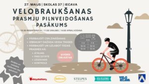 Iecavā, Skolas ielā 37, 27. maijā no plkst. 10.30 līdz 14 velobraukšanas prasmju pilnveidošanas pasākums.