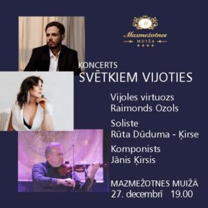 Mazmežotnes muižā 27. decembrī plkst. 19 koncerts «Svētkiem vijoties» kopā ar vijoles virtuozu Raimondu Ozolu un draugiem, solisti Rūtu Dūdumu-Ķirsi, komponistu Jāni Ķirsi.