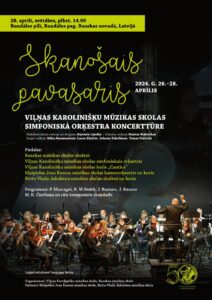 Rundāles pilī 28. aprīlī plkst. 14 Viļņas Karolinišķu mūzikas skolas simfoniskā orķestra koncerttūre «Skanošais pavasaris».