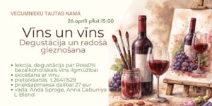 Vecumnieku tautas namā 26. aprīlī plkst. 15 «Vīns un vīns» – degustācija un radošā gleznošana kopā ar Andu Sproģi un Annu Gabuniya L-Blend.