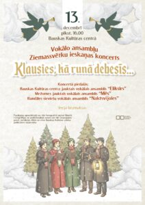 Bauskas Kultūras centrā 13.decembrī plkst. 16 vokālo ansambļu Ziemassvētku ieskaņas koncerts «Klausies, kā runā debesīs…».