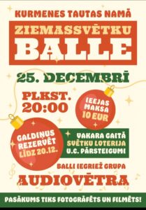 Kurmenes tautas namā 25. decembrī plkst. 20 Ziemasscvētku balle kopā ar grupu «Audiovētra».